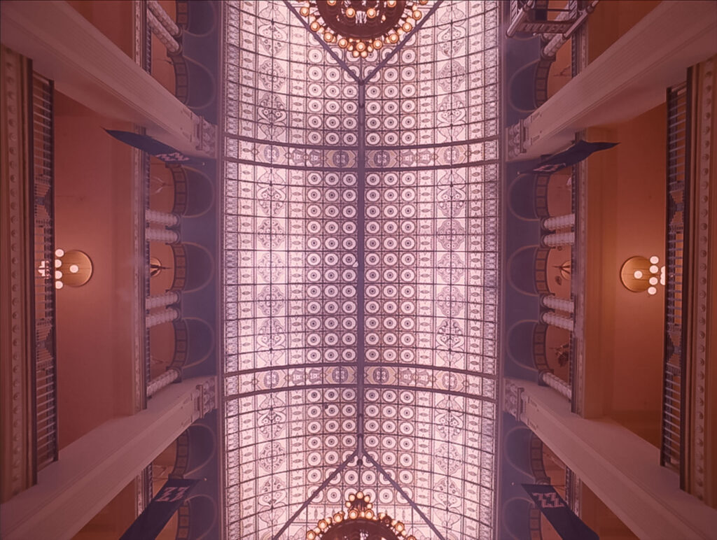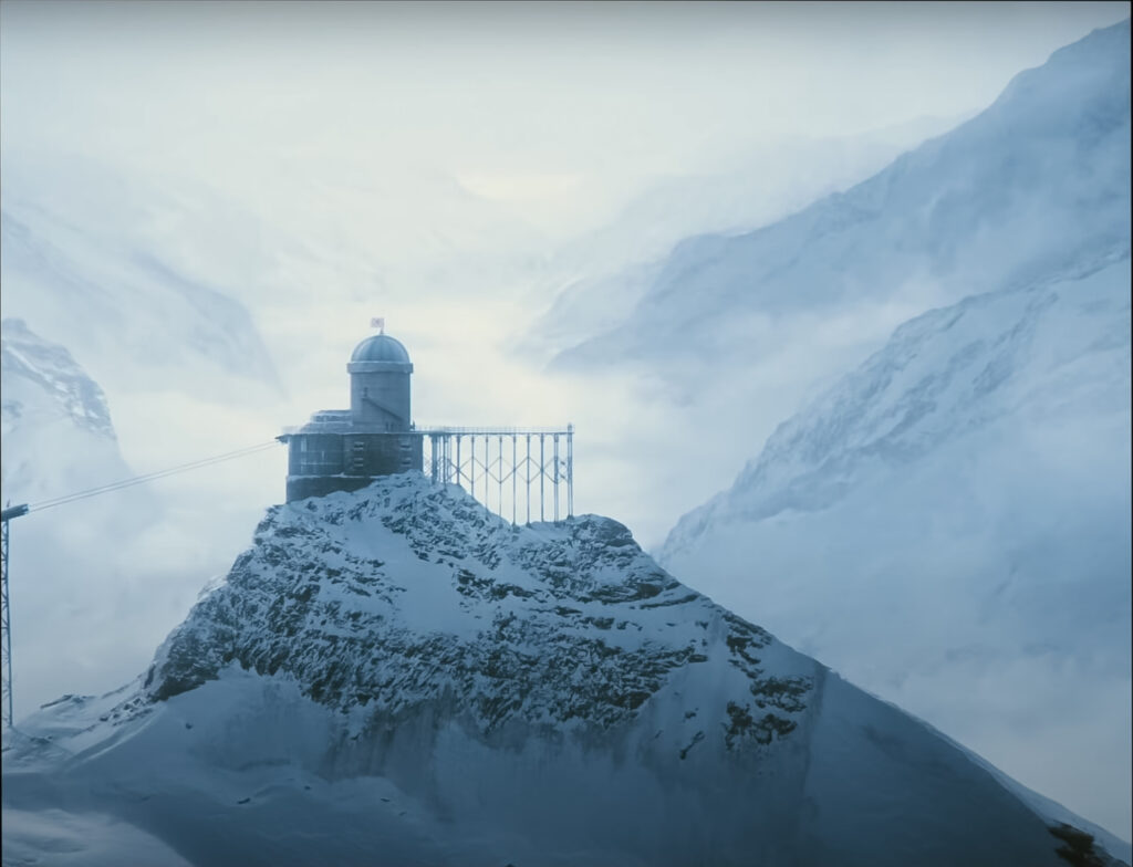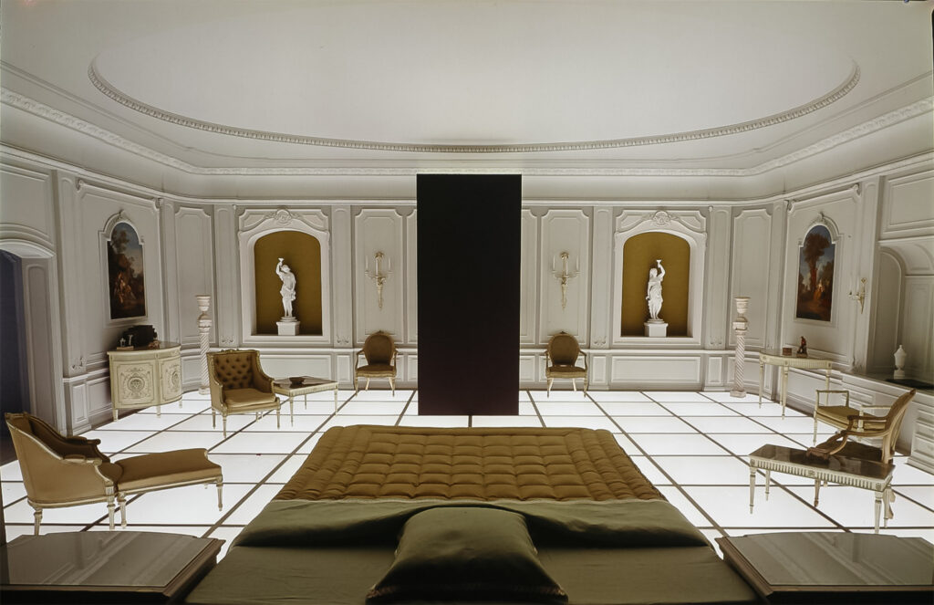 Then comes the white room — An eclectic room with retro-illuminated floor grid, classical furniture, and renaissance paintings where the last part of the movie unfolds.