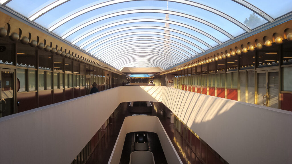 Kubrick’s later film A Clockwork Orange has a lower budget but is equally interesting in terms of architecture. It uses real-life locations with various architectural styles that range from a classic revival theater, brutalist buildings to a disturbing milk bar and modernist houses.