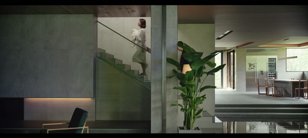 There are two iconic real-life locations that ground the story giving it a sense of realism. The first one being the Bradbury Building in downtown Los Angeles. The second one is the Ennis House, one of Frank Lloyd Wright’s Mayan revival houses that has become a favorite location for movies and series alike. (Find out more about FLLW architecture in Los Angeles in this documentary previously shared by Veeral Palladino.)
