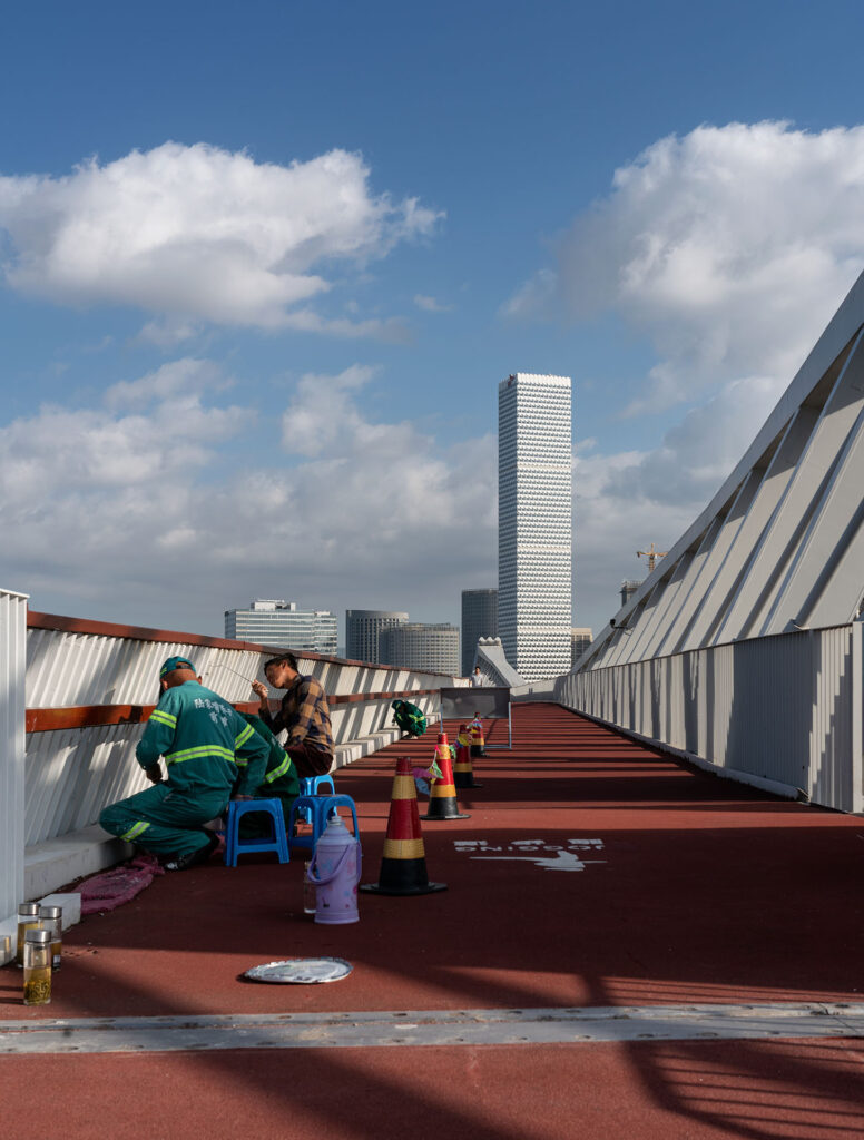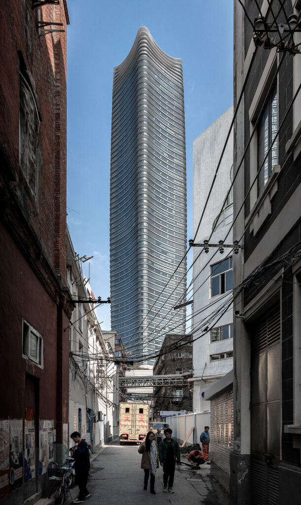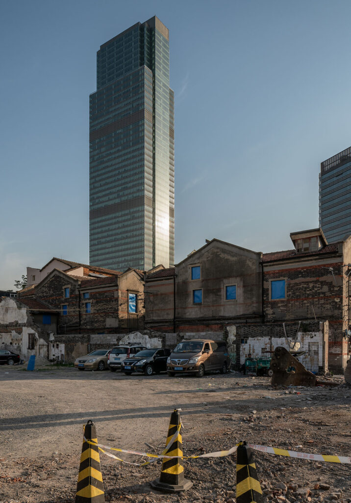 The photo essay does away with the long-established usage of the hero-shot image to document skyscrapers in which the tower is isolated as the be-all end-all. While most outsiders only ever see the dazzling postcard-like images of the Lujiazui skyline in Shanghai’s Pudong area, this series looks for tall buildings that are spread out all across the enormous city, and then more accurately contextualizes them with varied foregrounds ranging from laneway residential communities, to developing construction sites, to elevated highways, to vibrant commercial corridors. As a former architect myself who spent more than a decade designing tall buildings in Asia, I eventually came to the realization that very few people cared about the ‘architecture’ as much as I did. What really matters is its impact on the city, the community, and the people who actually use the building.