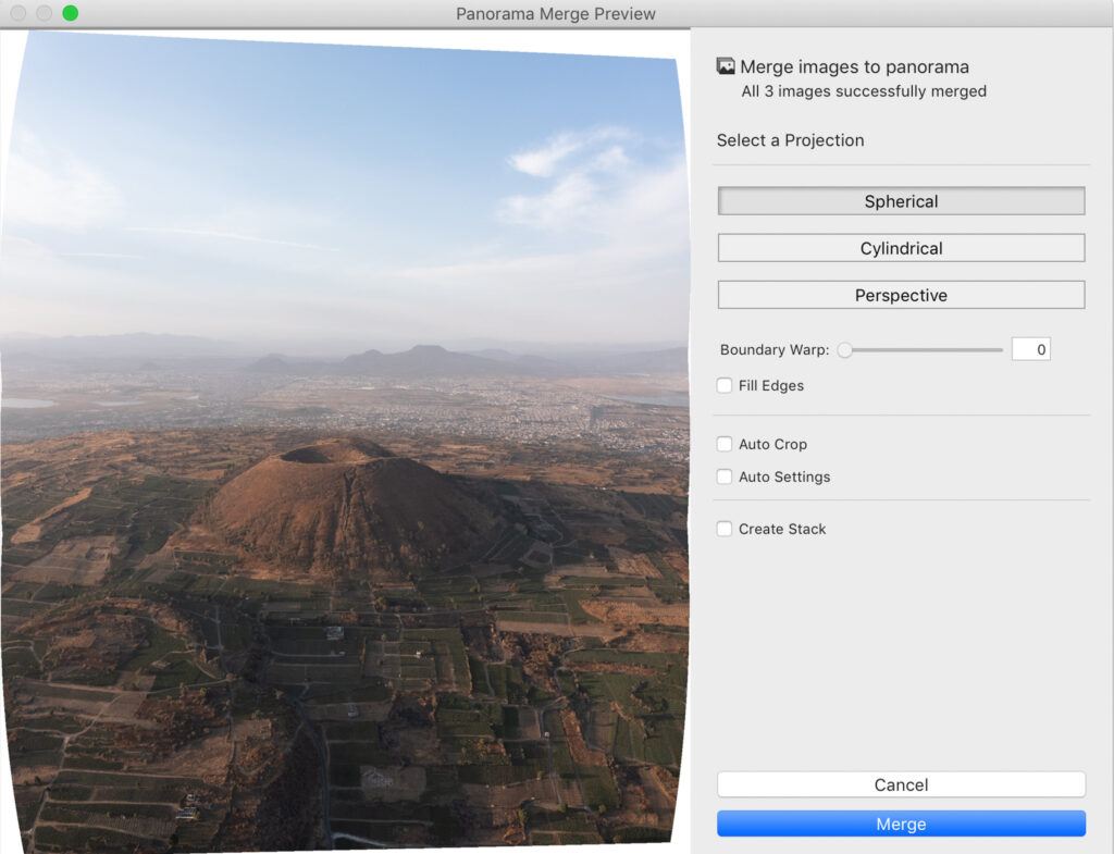 Lastly, here is the comparison of the RAW merged panorama and the final version with minor tweaks. I believe that by choosing a vertical composition there is a more accurate depiction of the specific context that surrounds this volcano. It blows my mind that to know that the urban settlement in the foreground was once a lake.