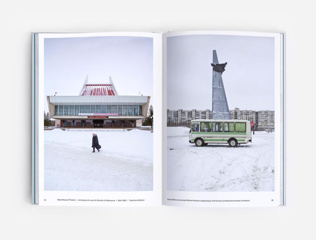 The typification did not occur in housing units, but also in public buildings. Most of the designs of the cosmic circuses, concrete theaters and opera houses were developed in Moscow and then copy-pasted into the urban tissues of Novosibirsk, Krasnoyarsk and other cities of the Far North. However, several local architects were bold enough to develop their own vision of modernist and brutalist architecture moulded to fit the newly developed urban landscapes and severe climate of the region. The book features two of the coldest cities on the planet, Yakutsk and Norilsk.