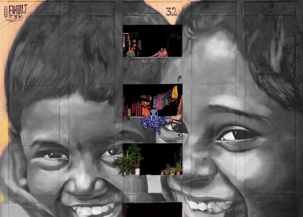 Kavin kumar la sa photographed this image in Kannagi Nagar, “a resettlement home for fishermen communities.” Kavin uses this photograph to draw our attention to the art that exists within these communities, and how the murals here “illustrate ideas of home, hope, and livelihoods.” I love the scale and the framing Kavin uses to draw us in and help us understand just how massive this mural is.