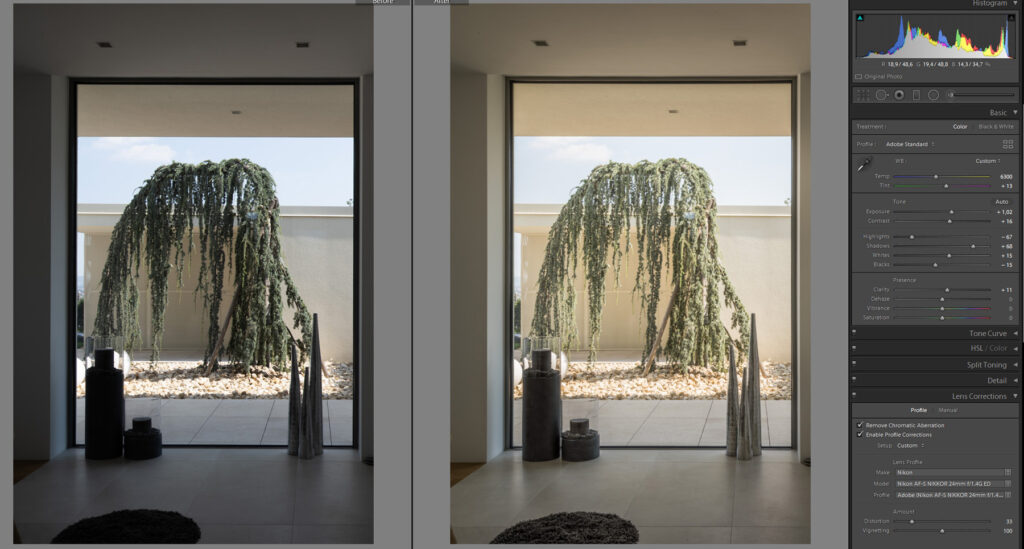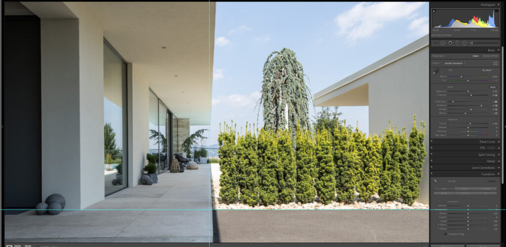 I’m going to work on all of my images one more time from the beginning so that you can be with me the whole time. Right away, after I open the first image I have selected, I start questioning my previous decision: does this image really have a place in my selection? The answer is no! On the one hand, I was 1 minute late because I made the pair for this image from the other side of the house (which eventually became an unsuccessful attempt – I wrote more about this in my previous post). On the other hand, I’m not completely accurate with the composition. This error is not too difficult to fix in photoshop. If this were one of the main images in the selection, I would definitely try to fix it later, but now it goes among the ‘1-stars’.