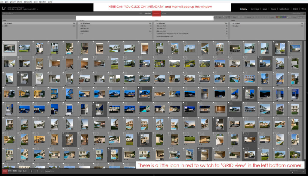 As you can see on the image above, many images have at least ‘1-star’, so my first round of narrowing the images is not helping much; I’m down to 89 images, so I have to give it at least one more round of culling. That ended up with 50 ‘ 2-star’ images which I liked better. For now, that’s fine for me. I know that this still may seem like a lot at first, but you’ll now see how quickly we work out these in Lightroom. Besides, I have selected 25 outside detail images and 10 aerials.
