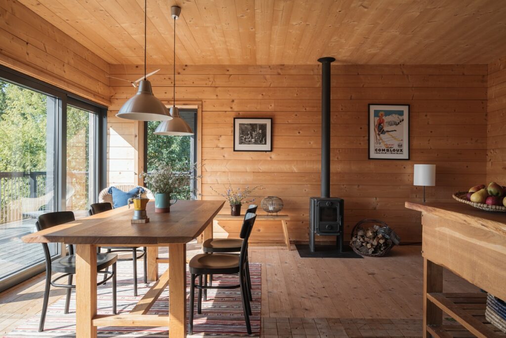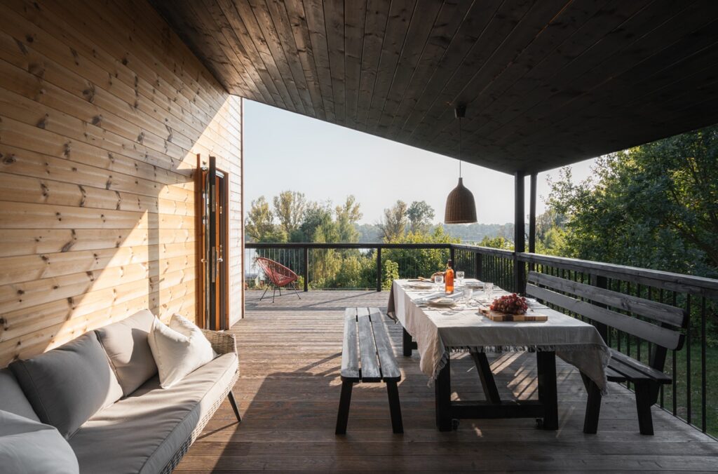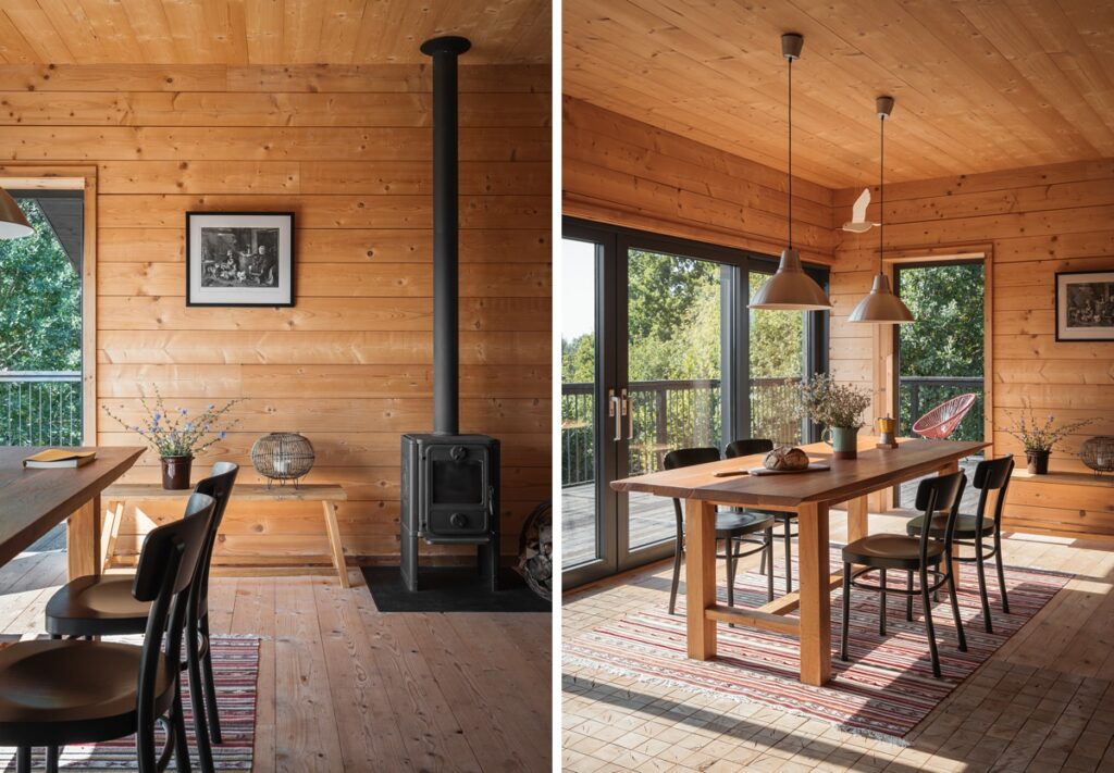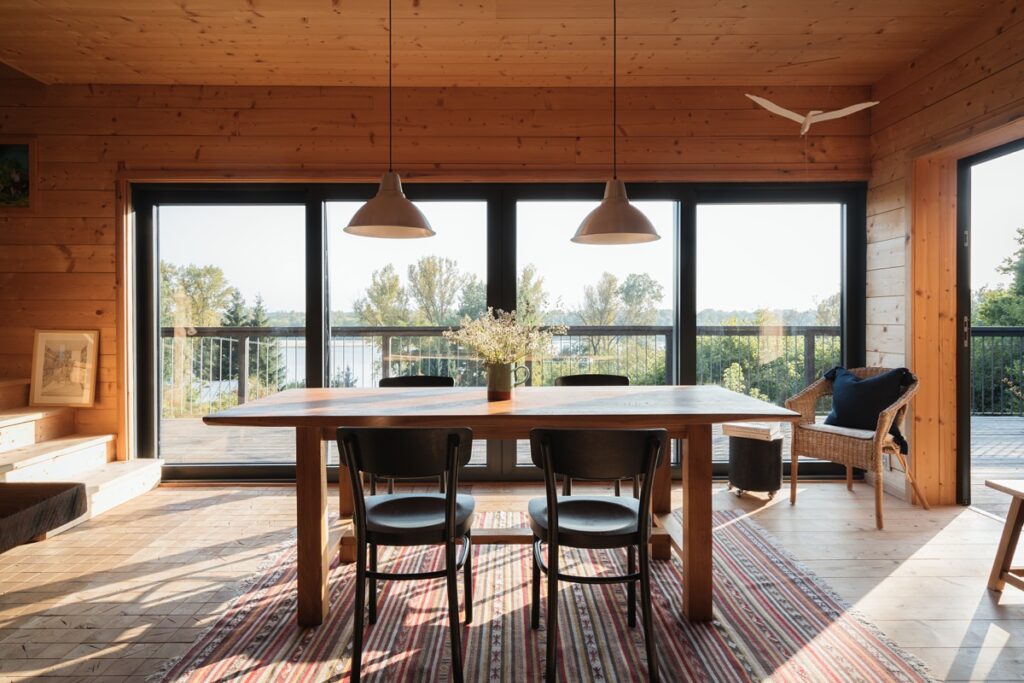 There are great highlights and shadows sweeping across this scene that bring a lot of mood and interest to this seemingly simple dining space. This perspective allows us to see the cabin’s lovely view of the Vistula River beyond.