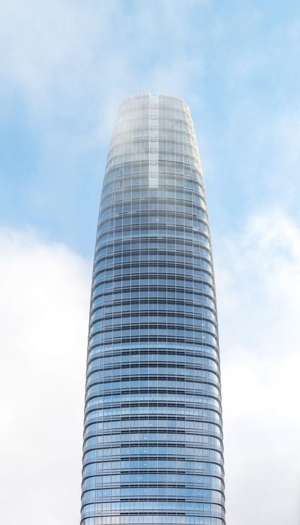 This establishing shot on the left will give you some idea of how big this beast is, which is reinforced in the picture on the right, where Salesforce Tower has its head in the clouds. Jason explains “[In the image on the left] I was given 1 minute on the rooftop at the worst time of day for lighting. Worth it! It’s the only view where the entire tower is visible and not interrupted by the transit center.” The photograph on the right was captured while he was shooting a totally separate project.