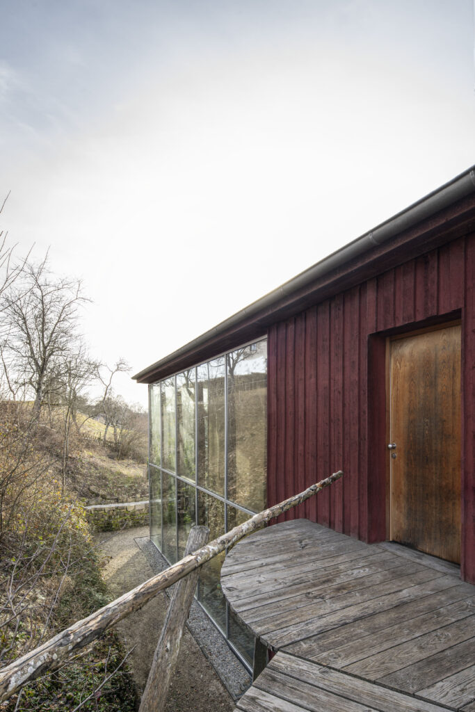 “The Merz Haus is located in a small village in southwest Germany. In this small village, you mostly see traditional buildings — houses with gable roofs, and beautiful flowers in the small windows. So the Merz Haus caught my eye right away when I first walked through the village. It is located on a small hill, a box made of glass and wood, with the transparent part facing west.
