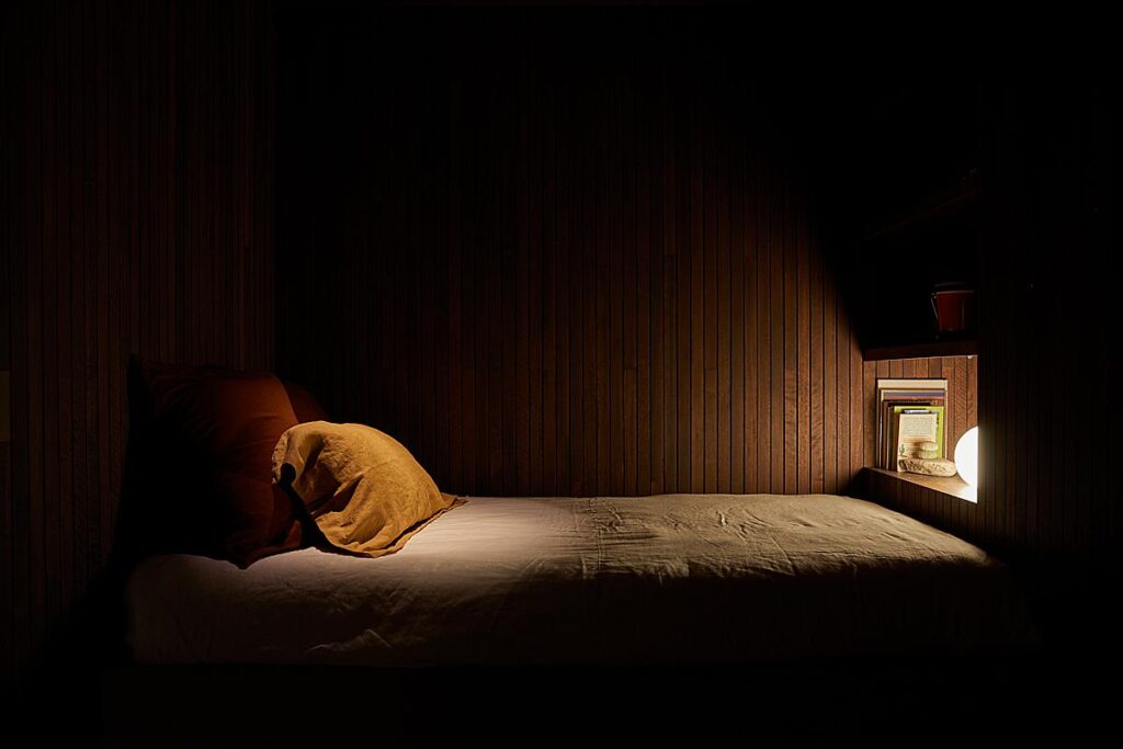 Sam brings great mood and a sense of coziness by showing the house “after hours” if you will. With the bed lit only by the lamp in the room, he gives us a fresh and now rarely seen ambiance in architecture photography. I love it, and think it fits in perfectly with the rest of this project.