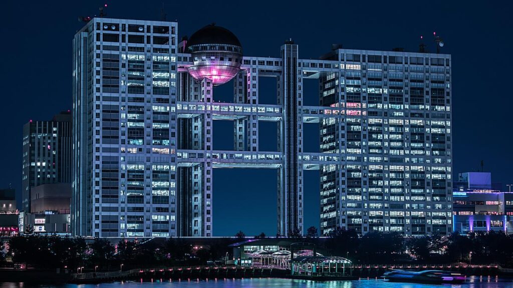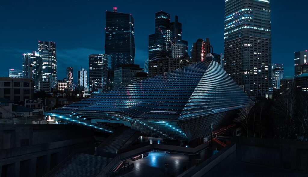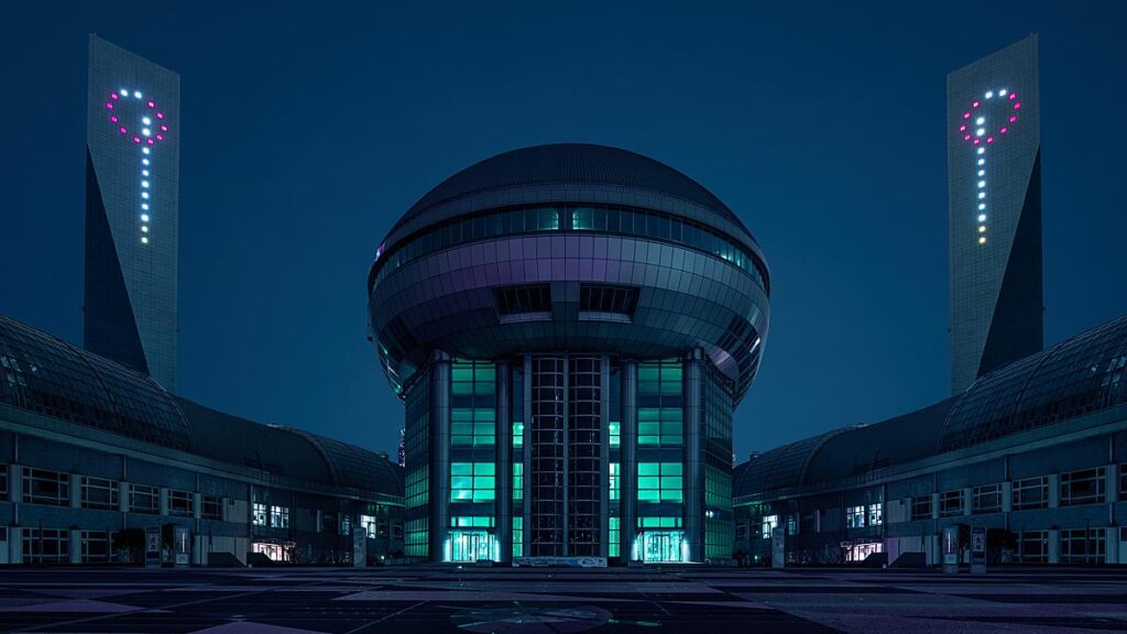 Tom goes on, “As a starting point the series follows the work of Kenzo Tange, Japan’s Pritzker Prize winning architect and his Disciples of the Metabolist movement of postwar modernist architecture. I selected a core list of buildings that embodied the Metabolist philosophy which attempted to combine the creation of brutalist megastructures with the principles of organic growth. Beyond the core interest of the metabolist movement I also tracked buildings created during the post-modern era of the 1990’s as well as tighter street vistas that spoke to me and embodied the cyberpunk feeling of Tokyo.”