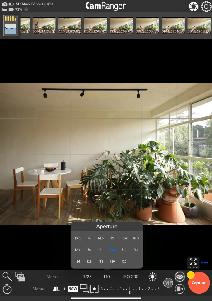 The first obvious advantage while shooting tethered is the screen size. I was able to easily align the composition using the overlay grid as reference, rotate that chair a few centimeters and move the coffee pot to the right spot. Best of all, by setting the app to live view I could realize all of the previous without having to walk back and forth to check if I got it right. And yes the refresh rate is quite decent, as shown in the video below.