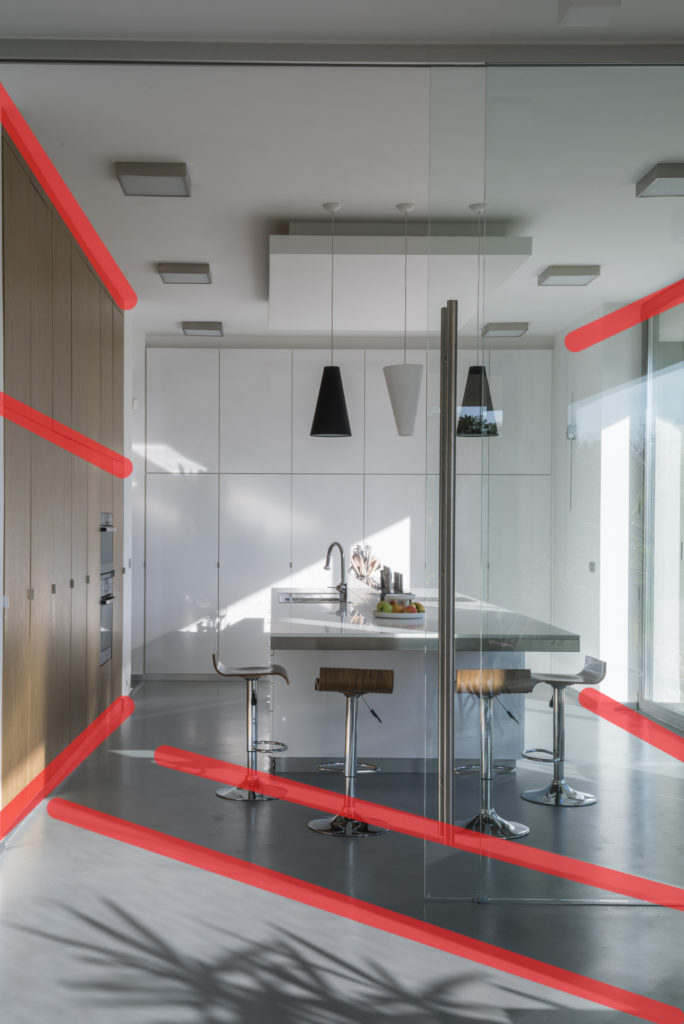 I aligned the camera with the kitchen island and the ceiling in the middle (24mm TS with no shift applied)
